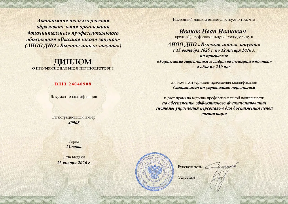 Это полноценная образовательная программа для получения дополнительной квалификации и освоения новой профессии. Для поступления также требуется высшее или среднее профессиональное образование (СПО). Итоговым документом является полноценный диплом о профессиональной переподготовке, который ценится на рынке труда. Программы являются наиболее объемными и начинаются от 250 академических часов, что обеспечивает глубокое погружение в специальность.