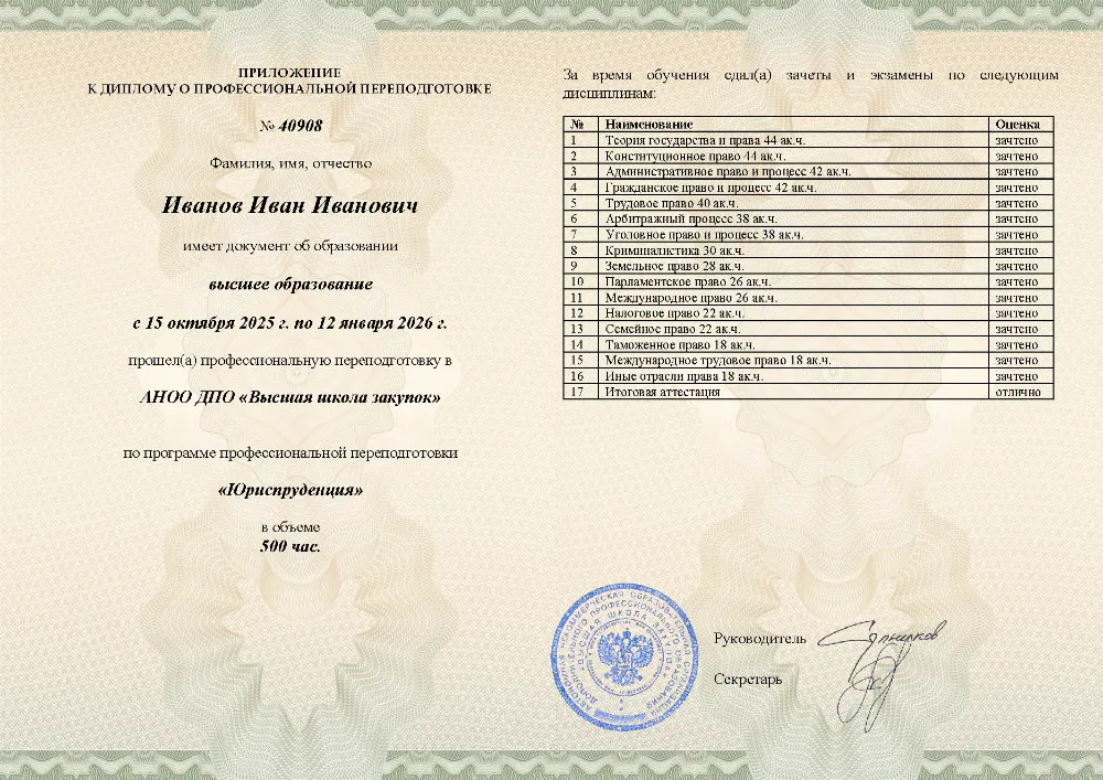 Профессиональная переподготовка, 500 академических часов, 16 модулей: теория государства и права, конституционное, гражданское, уголовное и трудовое право, арбитражный и административный процесс, налоговое, земельное, таможенное и международное право. Онлайн-обучение в в Уфе с итоговой аттестацией.