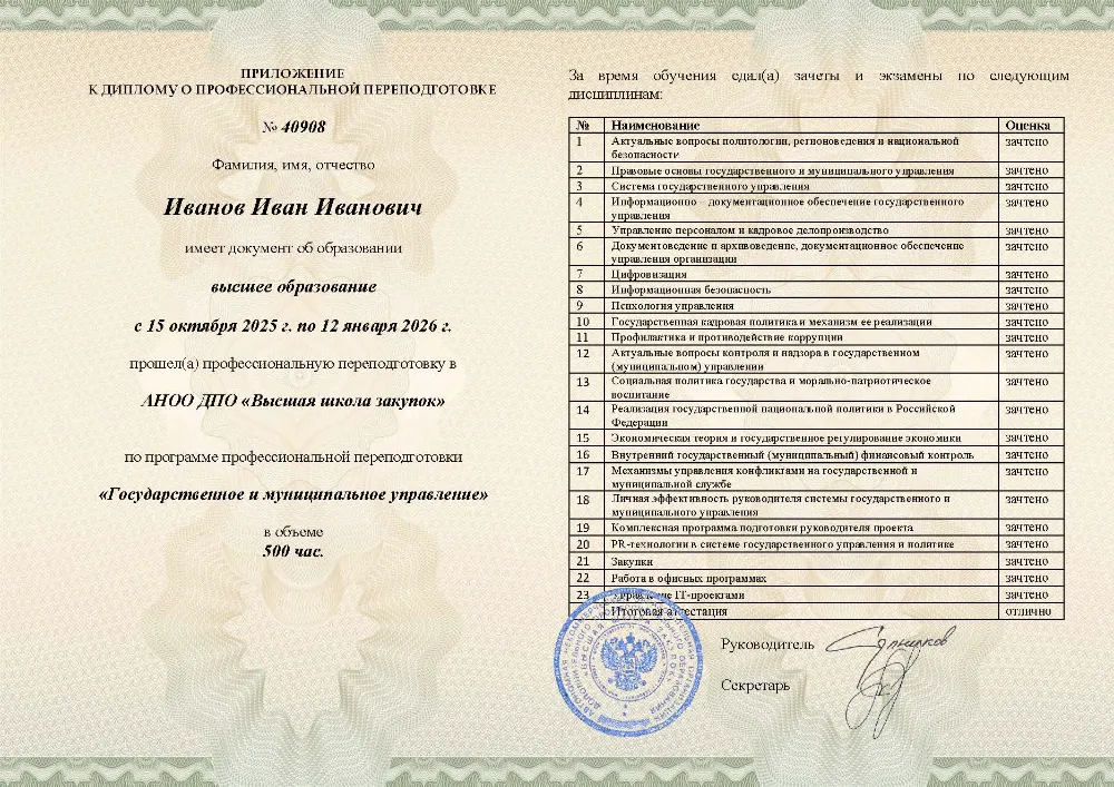 Профессиональная переподготовка, 500 академических часов, 25 модулей: правовые основы и система государственного управления, управление персоналом, финансами и противодействие коррупции, социальная политика и экономическое регулирование, цифровизация, закупки и информационная безопасность. Онлайн-обучение в в Уфе с итоговой аттестацией.